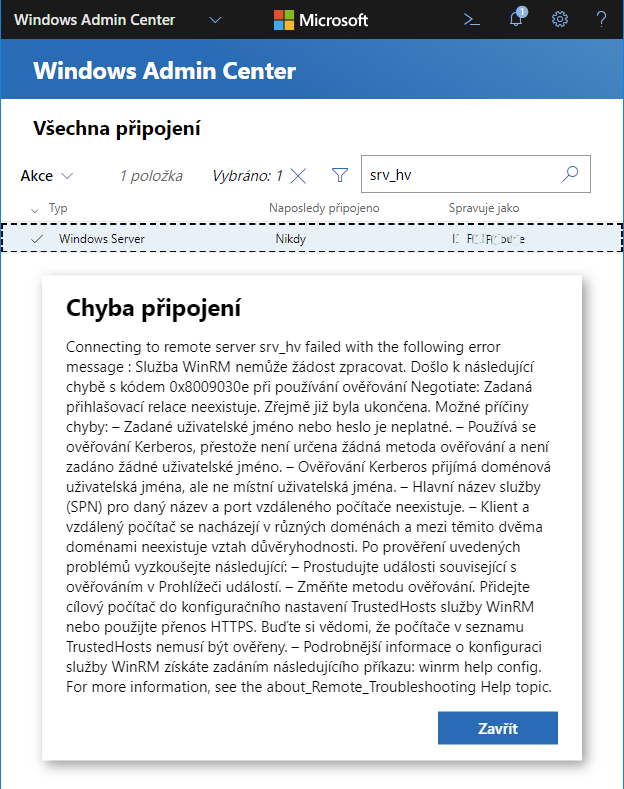 Set-Item WSMan:\localhost\Client\TrustedHosts -Value “jmeno serveru”